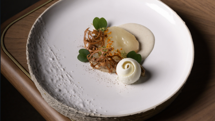 L’établissement met en valeur une gastronomie française sublimée par des influences japonaises et une approche durable.